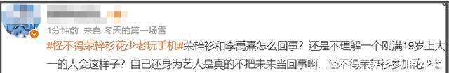 荣梓杉出轨打人一事被曝光后,其过往许多言行也被翻出,其中比较著名的是《花少》片段,不少网友吐槽他终于翻车了,也感慨他怪不得录制节目老玩手机,原来是真忙。但还是不能理解一个19岁的大学生为何会有这么烂的感情观,童星出身的他又为何如此不爱惜自己的职业生涯。