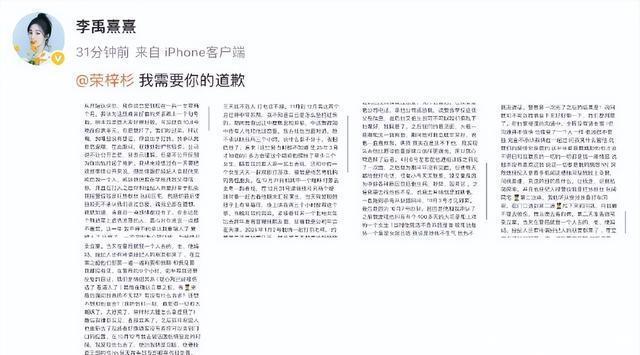 最近,演员李禹熹控诉荣梓杉恋爱期间出轨打人,并晒出相关医疗证明和立案证据,要求荣梓杉道歉。虽荣梓杉方迟迟未回应,但各种爆料紧随其后。